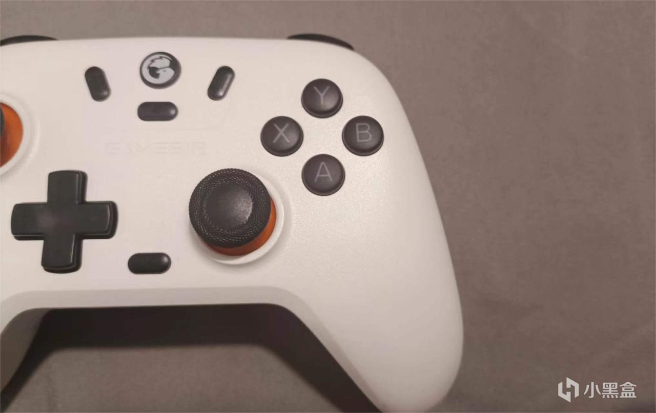ABXY按键采用导电胶材质,采用双色注塑键帽,更加耐磨,按压舒适。十字键也是导电胶按键,回弹力反馈感很强,分离式十字键设计不会轻易出现串键的情况。